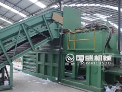将液压打包机的打包绳子串过91视频专区免费看压缩机后面的自动弹紧装置,并顺着打包带槽安放,之后将